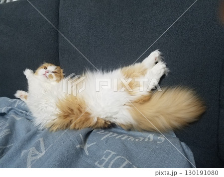 あり得ない体勢でくつろぐスコティッシュフォールド