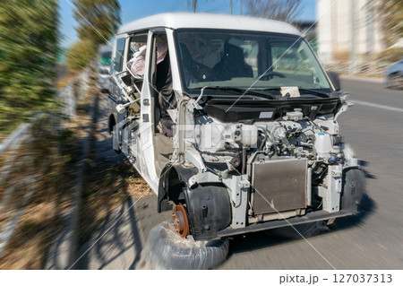 不法放置された自動車にズームイン
