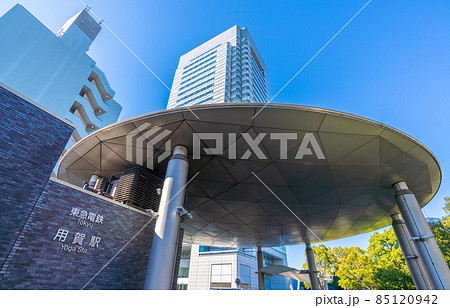 日本の東京都市景観 東急電鉄 用賀駅や太陽光などを望む