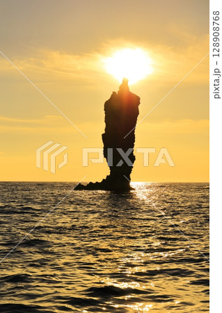 【島根県】夕日が灯ったローソク島(隠岐の島 島後)