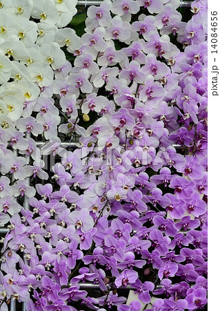 二色の胡蝶蘭(紫&白)のディスプレイ:世界らん展