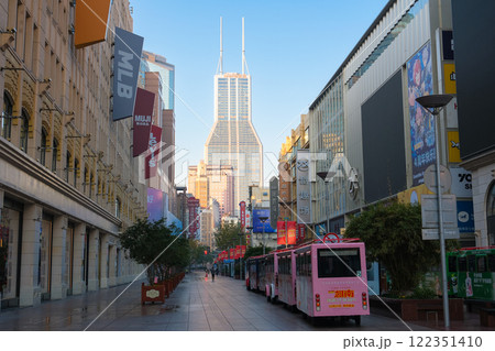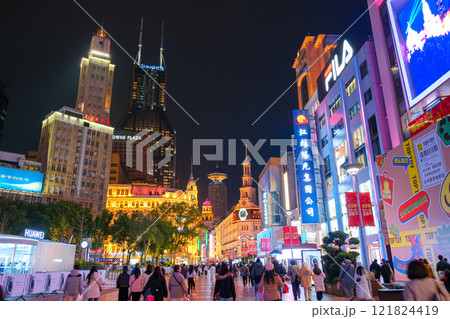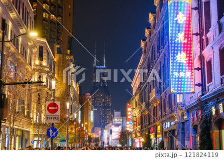 中国 上海市、夜の南京東路 上海世茂国際広場