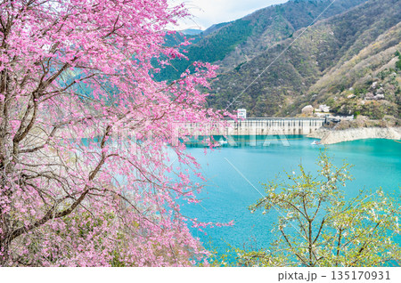 東京 奥多摩湖と湖畔の桜