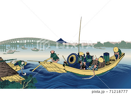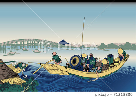 葛飾北斎イメージ御厩川岸より両国橋夕陽見線