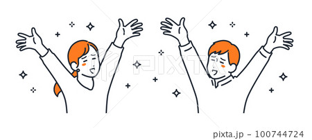 バンザイする若い夫婦のシンプルなベクターイラスト素材