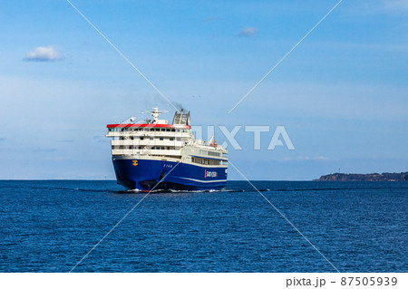 新潟県新潟市新潟港と佐渡島両津を結ぶ佐渡汽船フェリーから佐渡島遠景
