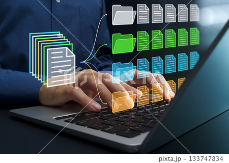 ドキュメントの分類。ドキュメントマネジメントシステム(DMS)。ファイルとフォルダーのアイコン。ノー