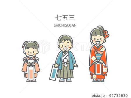 七五三 和服の子どもたち シンプルでかわいい線画イラスト