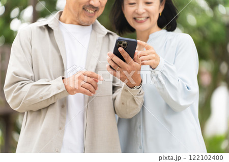 スマートフォンで調べものをするミドル夫婦 ライフスタイルイメージ