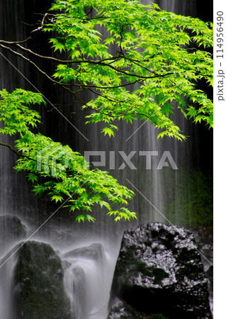 初夏の達沢不動滝・青モミジ(福島県・猪苗代町)