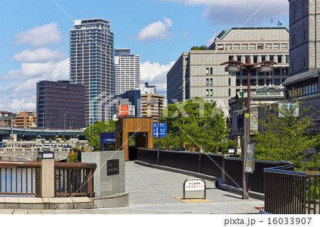 大阪中之島。都市風景。大阪市役所付近。中之島ガーデンブリッジ。