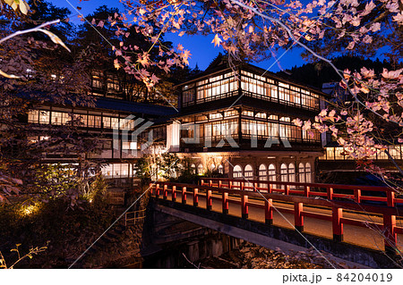 日本最古の温宿建築 四万温泉 積善館本館の夜景(群馬県中之条町)