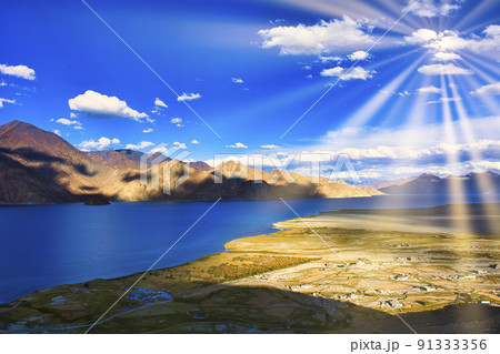 インド・ラダック First View of Pangong Lake, Ladakh, India