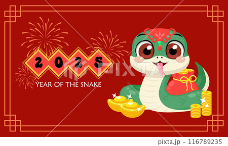 Cute snakes . Chinese New Year symbol. Chinese horoscope zodiac sign. Cartoon vector illustration isolated on white background