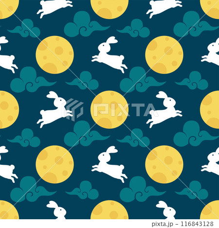 Mid Autumn Seamless Pattern Design with Decorative Elements in Hand Drawn Cartoon Flat Illustration Template