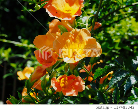 ノウゼンカズラ科ノウゼンカズラの橙色の花