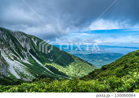 【日本百名山】大山 弥山頂上から見た初夏の弓ヶ浜と日本海 鳥取県西伯郡大山町