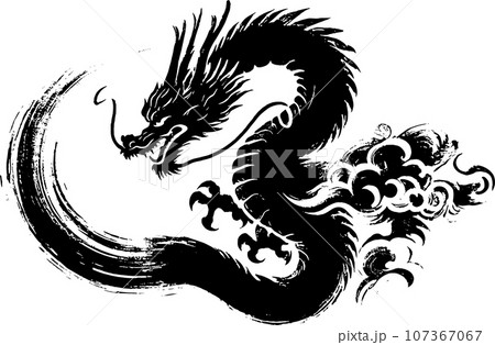 墨で描いた龍のイラスト 年賀状 干支 アイコン
