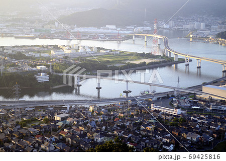 広島市 黄金山から海田町_坂町方面の眺望 日の出