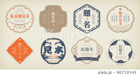 和風レトロヴィンテージなデザインのラベルフレームセット。