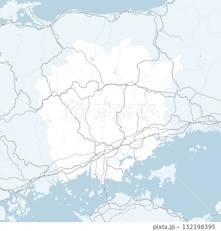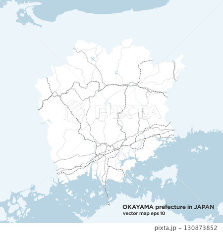 日本の岡山県と隣接する都道府県を含む、シンプルなロードマップ