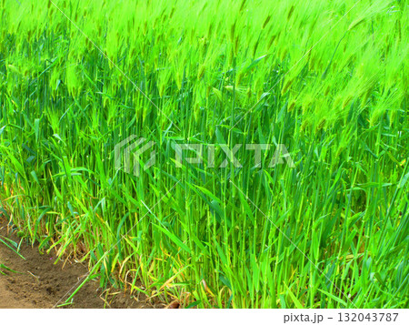 オオムギ畑の若葉の茂った風景