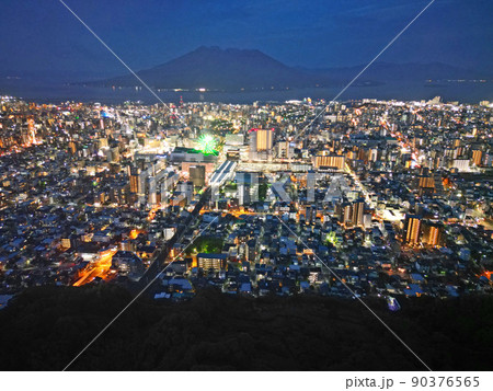 武岡公園の上空から鹿児島市街地の夜景空撮
