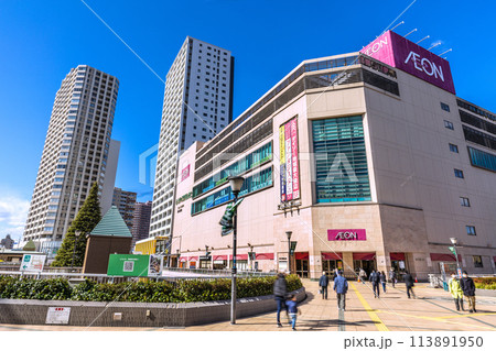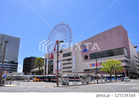 日本の相模原市都市景観 橋本駅前やバスロータリー、タワーマンション群などを望む=21日