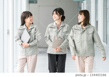 作業着・作業衣服を着た製造業・建築業・運送業・建設業の女性スタッフ
