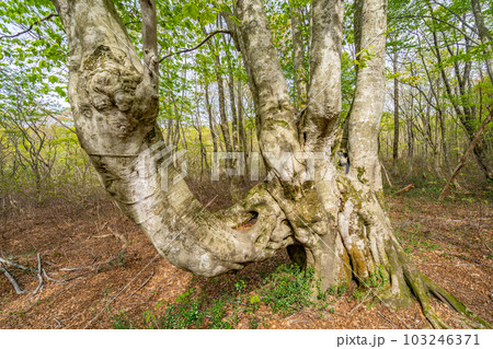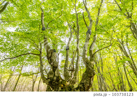 中島台・獅子ヶ鼻湿原の春 あがりこ大王 森の巨人 ブナの巨樹