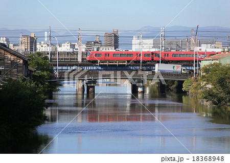 名古屋市中川運河の橋梁を通過する名鉄車両