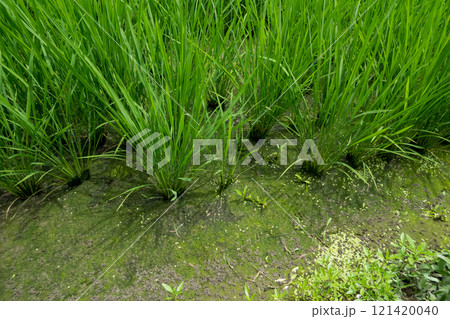 夏の田んぼの稲と土壌