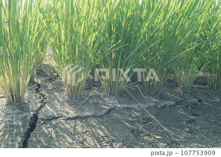 夏の田んぼの稲と土