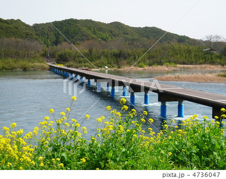 四万十川の菜の花と屋形船