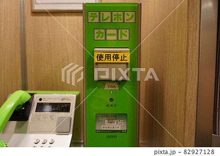 使用停止された新幹線のテレホンカードの自動販売機と公衆電話