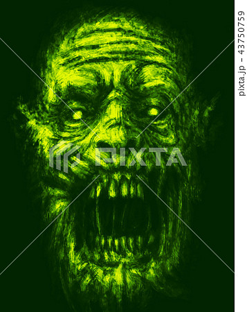 Grim zombie apocalyptic face. Green color.