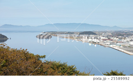 中海の工場地帯を江島大橋から見る 水辺の工場