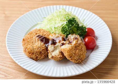 ソースをかけたポテトコロッケ