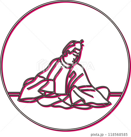 線画円形シンプル百人一首 中納言家持