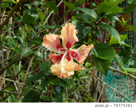 MALACCA, MALAYSIA -MARCH 29, 2017: Hibiscus rosa-sinensis or is a genus of flowering plants in the mallow family, Malvaceae. It was a Malaysian national flower call Bunga Raya.