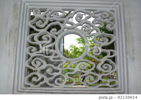中国 蘇州の古典庭園 耦園にみられる漏窓(ろうそう) 蘇州古典園林 世界遺産の中国式庭園