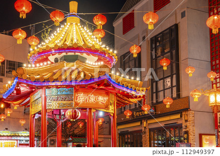 神戸南京町の夜景 南京町広場の象徴的建築物「あずまや」