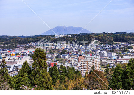 高台から見る桜島と鹿児島市の街並み
