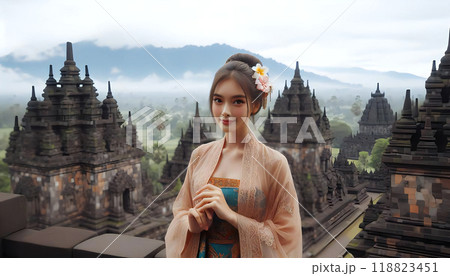 ジャワ島ヒンドゥー遺跡とインドネシア美女