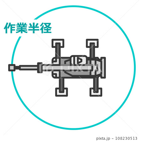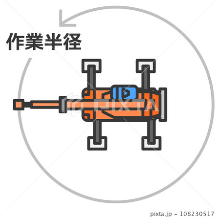 建築現場で資材や荷物を吊上げるユニック車の平面イラスト
