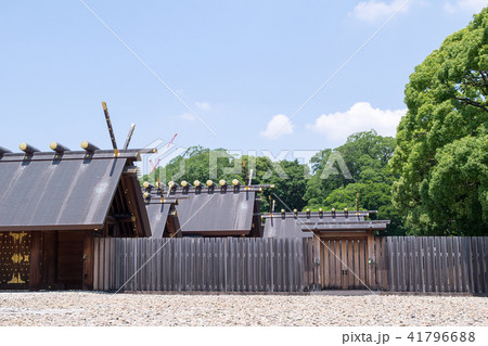名古屋市 熱田神宮 翼廊空隙より中重、中重鳥居、内玉垣御門を望む