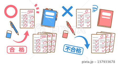 テストの合否イラスト素材セット|受験・試験・学生
