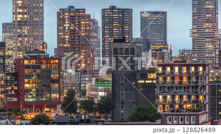 Aerial day to night timelapse of Katendrecht peninsula and Maashaven harbour in Rotterdam, The Netherlands.