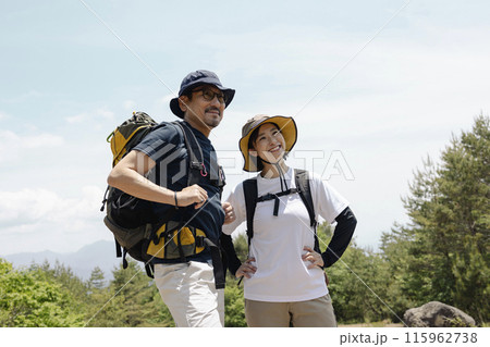 登山をする夫婦 山梨・八ヶ岳