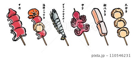 海鮮バーベキュー・海鮮串焼きのイラストセット